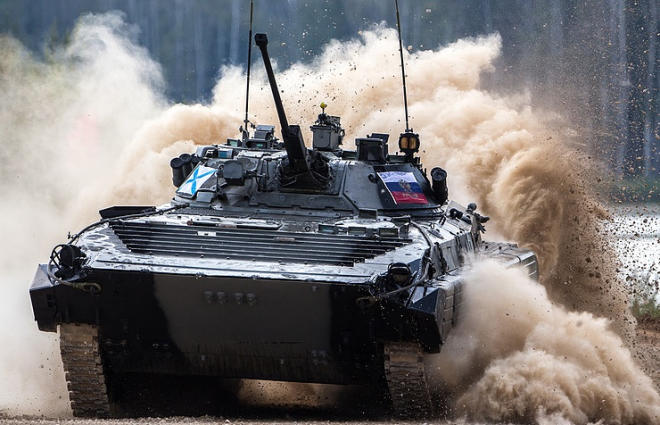 "As part of the Armata R&D work, tests of the new-generation T-14 tank are continuing. Work is close to being wrapped up on boosting firepower and the command controllability of the BMP-2 infantry fighting vehicle with the Berezhok fighting compartment mounted on it," Salyukov stated.