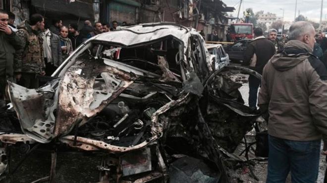 State TV showed footage of mangled cars and shutters of shops damaged and blown apart as rescue workers cleared the debris amid a heavy security presence in the bustling commercial area near a popular vegetable market and a garage depot.