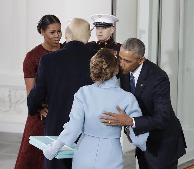 Axar.az reports that, outgoing President Barack Obama and first lady Michelle Obama gave the Trumps a warm welcome, as they embraced with hugs and kisses on the cheek at the North Portico of America's most famous residence.