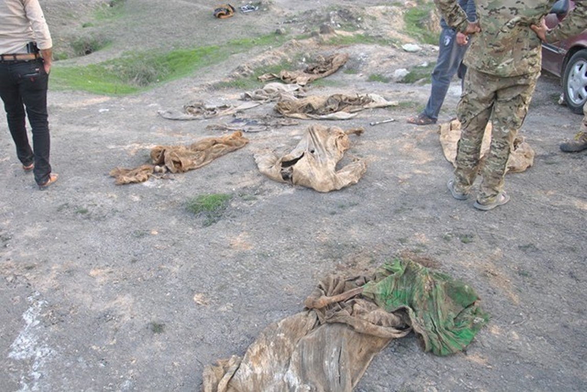 Local activists found the remains of local residents executed by IS terrorists out of a local naturally formed pit, where the victims had been dumped after being killed.