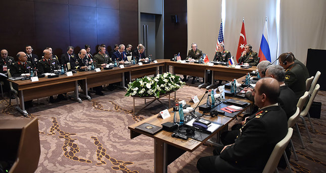 Turkish military Chief of Staff Gen. Hulusi Akar met Tuesday his American and Russian counterparts Gen. Joseph Dunford and Gen. Valery Gerasimov in southern Turkey's Antalya.
