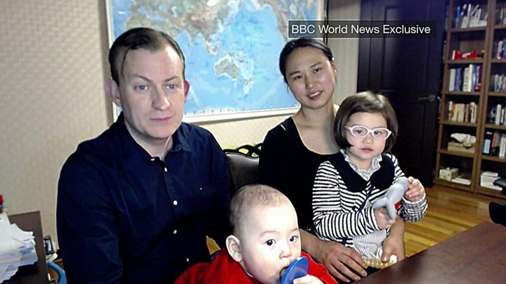 Prof Kelly, an expert on South Korea, was joined in the follow-up video by his wife, Jung-a Kim and children Marion and James - this time in a scheduled appearance.