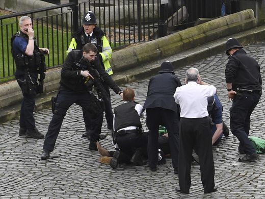 One woman has died after a terror incident that saw a police officer stabbed and as many as a dozen people reportedly run over outside London's Parliament building on Wednesday.