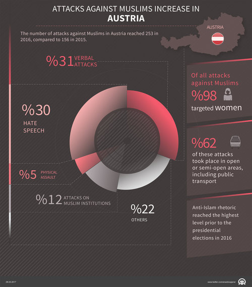 Islamophobic attacks in Austria increased 65 percent in 2016 compared to the previous year, a report has suggested.
