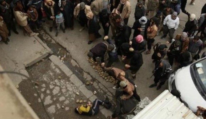 The photos revealed that the Islamic State militants started to throw the youth with stones, who was blindfolded, after throwing him from a building’s rooftop, but the exact time and location of the execution were not identified.