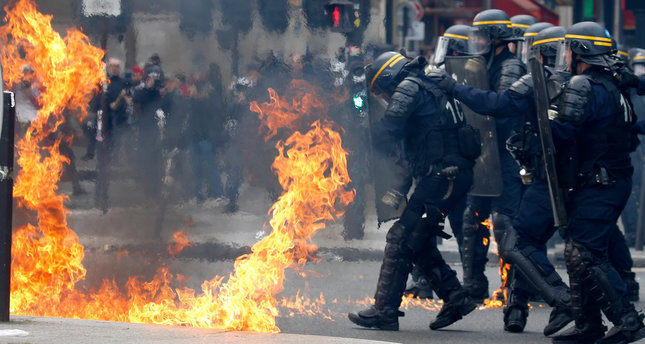 Video showed riot police surrounding the protesters disrupting the march after isolating most of them from the rest of the crowd near the Place de la Bastille. However, some continued to lob firebombs that exploded into flames in the street.