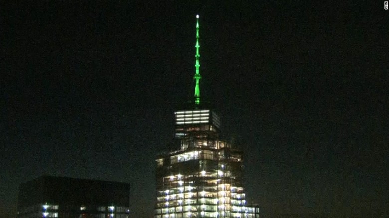 That support was buttressed by several city monuments and landmarks around the world, which lit up in green as an expression of support for the Paris climate diplomacy.