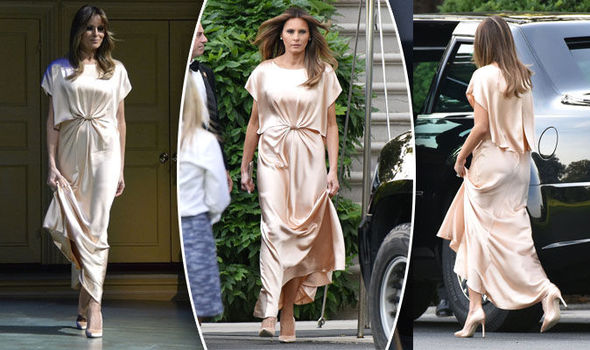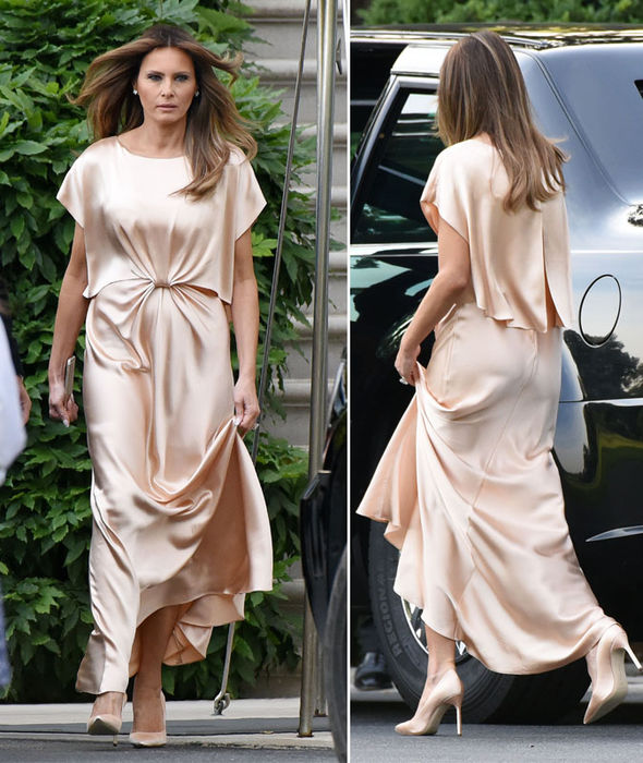 The material clung to Melania’s hips and legs, and she finished off the look with a pair of matching colour stilettos.