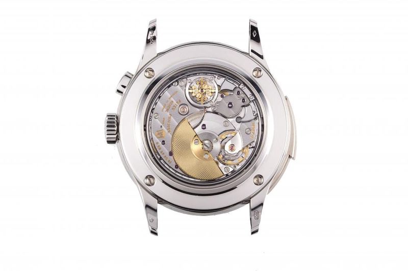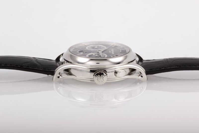 The watch is none other than a true grand complication Patek Philippe wristwatch—a reference 5208P. The 5208P is one of the most complicated watches Patek has ever made, and it includes a minute repeater, a mono-pusher chronograph, and an instantaneous perpetual calendar. It is one of the most impressive wristwatches in the world, and also one of the most expensive—it costs roughly 980,000 CHF and is offered only to top clients of the brand by application.