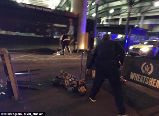 This is the heart-stopping moment the London Bridge terrorists lunged to stab a drinker before being shot dead by armed police in a hail of 50 bullets.