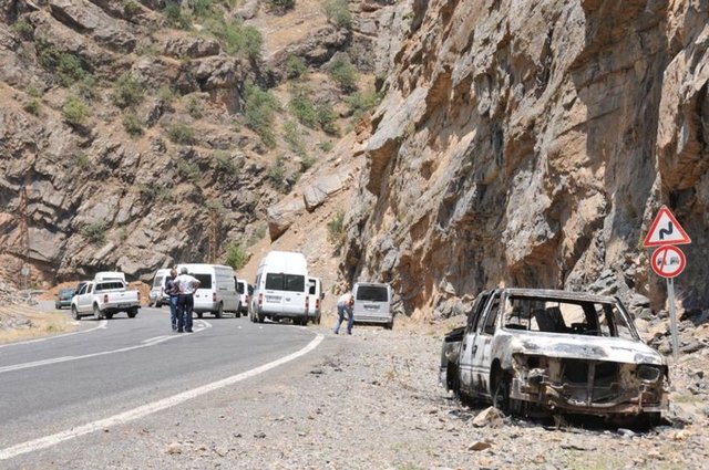 The shelling by PKK from Iraq's territory wounded six military personnel and three guards from one of the district's villages who were on duty searching for mines, Dogan News Agency reported, adding that all of the injured were hospitalized.