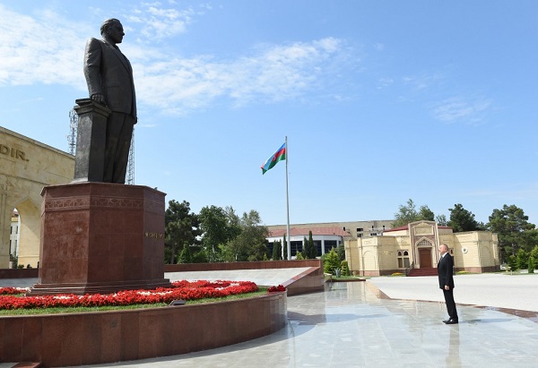 Report informs, the head of state laid flowers at the statue of nationwide leader Heydar Aliyev erected in the center of Shirvan.