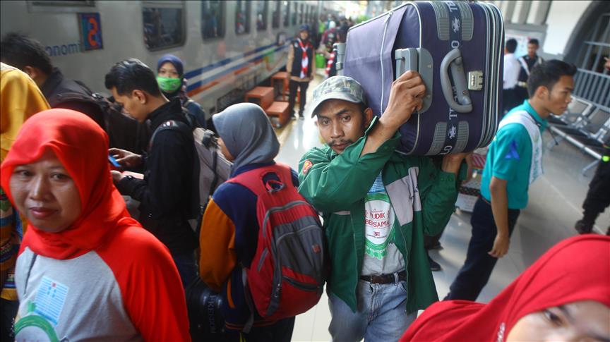 A spokesman for the national railway company told Anadolu Agency on Friday the crowds at Senen Station, Jakarta, began a week ago, marking the start of the huge wave of Indonesian Muslims traveling home.