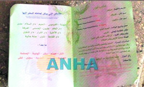 Recently Syrian Defense Forces discovered copies of “passports to heaven” in the liberated areas of Raqqa.