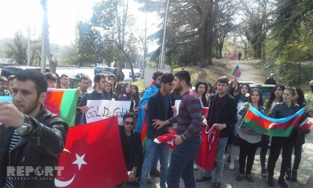 It was, they marched with slogans "Karabakh bizimdir! (Karabakh is ours), "Veten bolunmez!" (Motherland is indivisible) "Torpag bolunmez!" (The land is indivisible!). After they sang the national anthem of Azerbaijan in front of the embassy.