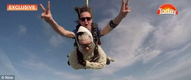 The risk-taking, adventure-loving grandmother plunged from the South Australian sky at an impressive 14,000 feet - all the while keeping a firm smile on her face.