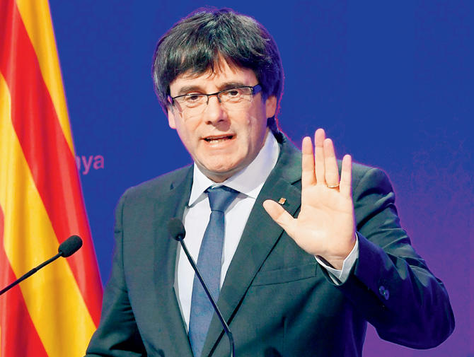 Pulling back from announcing separation from Spain, Catalan President Carles Puigdemont said on Tuesday that while he supports an independence declaration, one should be held off “for a few weeks” to allow for dialogue and mediation.