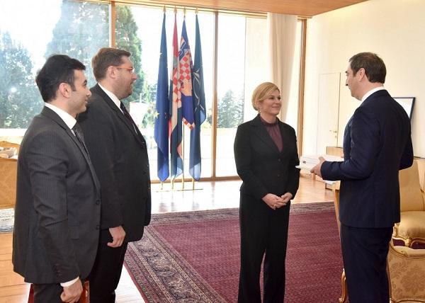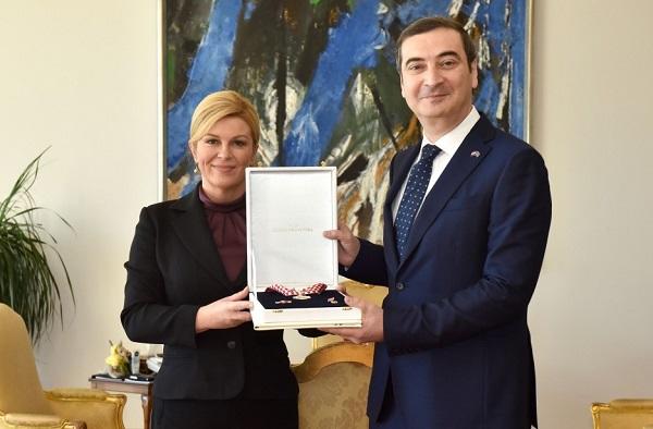 The President of the Republic of Croatia, Mrs. Kolinda Grabar-Kitarovic, awarded the Ambassador of the Republic of Azerbaijan to this country, Kamil Khasiev, a "Prince of Branimir Orden" with one of the highest orders of Croatia for his contribution to the development and strengthening of cooperation and friendship between our two countries.