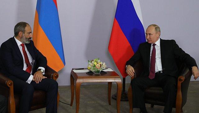 Armenia’s Prime Minister Nikol Pashinyan met with Russia’s President Vladimir Putin on Monday on the margins of the Supreme Eurasian Economic Council.