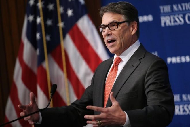 Perry spoke at a Baghdad hotel where he was attending a U.S. chamber of commerce event alongside Iraqi Oil Minister Thamer Ghadhban.
