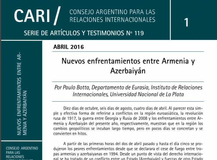 Argentine Council for International Relations (CARI), one of the main brain institutes in Argentina, has published on its website an article titled “New confrontations between Armenia and Azerbaijan”.