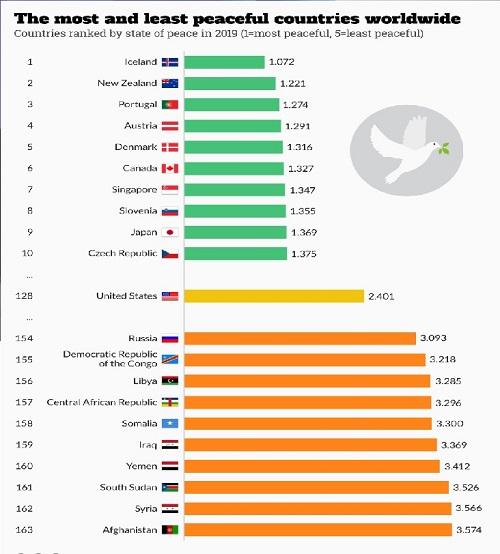New data from the Global Peace Index reveals that Iceland remains the most peaceful country in the world, while Afghanistan is ranked the most violent.