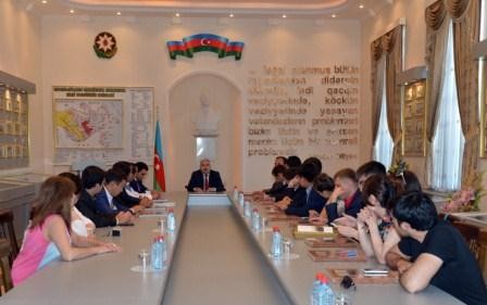 Foreign delegates, who were invited to Azerbaijan by the World Association of Young Turkic Writers, have visited the State Committee for Refugees and IDPs. Deputy Chairman of the State Committee for Refugees and IDPs, Fuad Huseynov, informed the delegation on the Armenian-Azerbaijani Nagorno-Karabakh conflict.