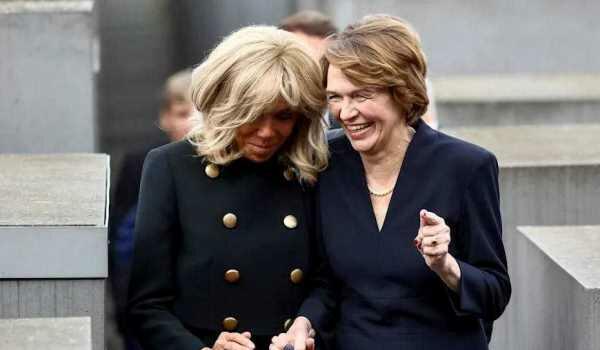 According to reports, Brigitte Macron and Elke Büdenbender started laughing while passing by the memorial to the Jews who were killed as a result of the genocide.